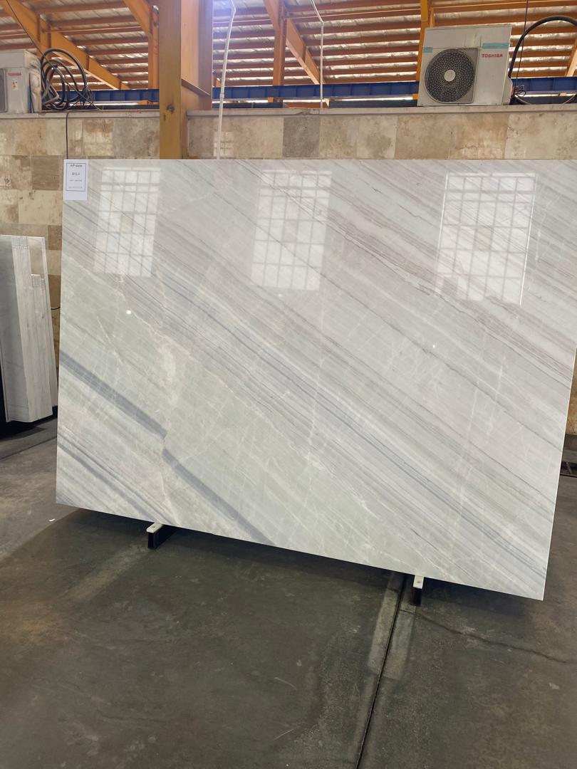 این سنگ از جنس کریستال بوده و دارای زمینه سفید به همراه خطوط محو طوسی رنگ می باشد و سطحی صیقلی و براق دارد.